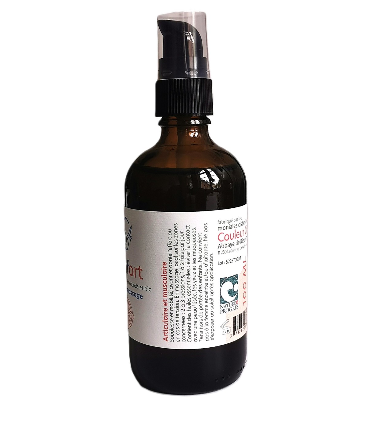 Huile de massage fabriquée par l'abbaye de Rieunette