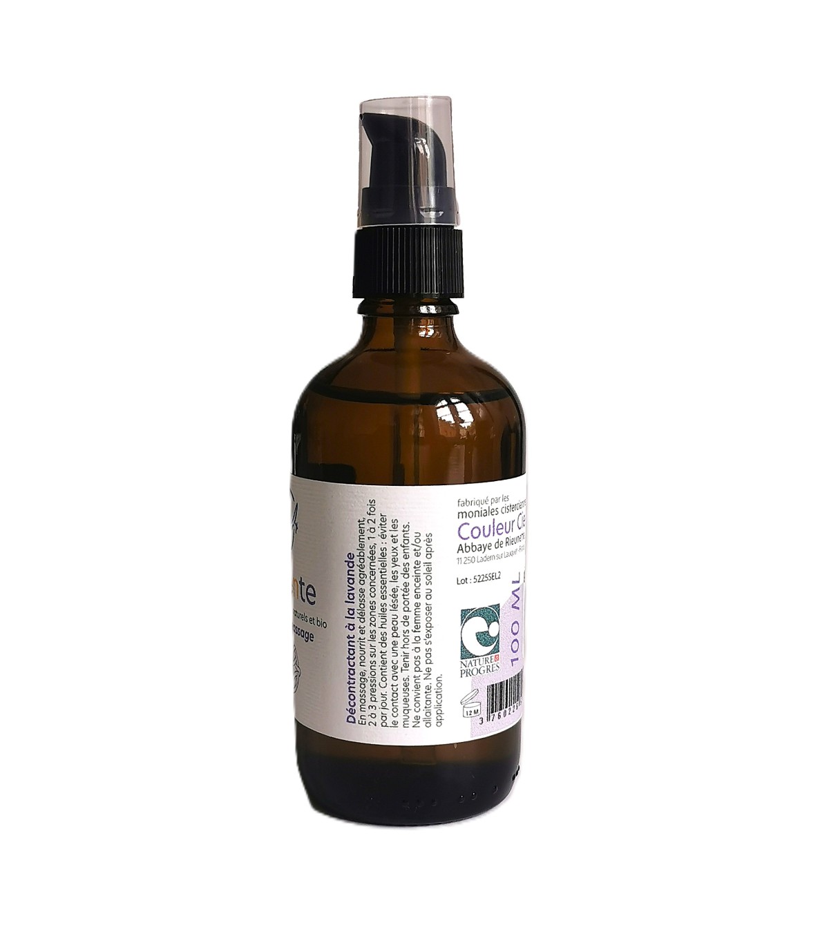 Huile de massage bio préparée par l'abbaye de Rieunette