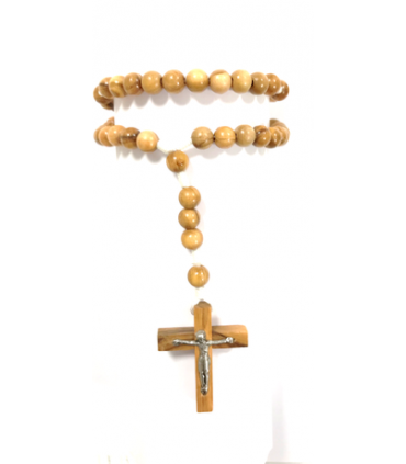 Chapelet en bois d'olivier, grains ronds,et nœuds blancs ainsi qu'une croix crucifix