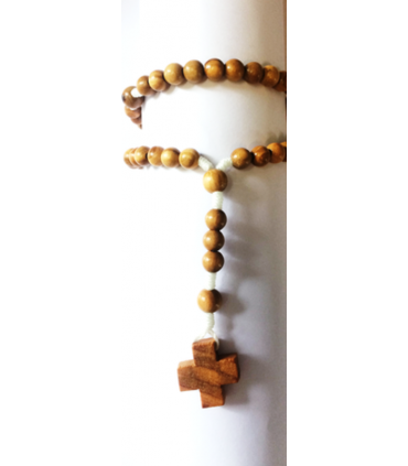 Chapelet en bois - Croix grecque - Nœuds blancs