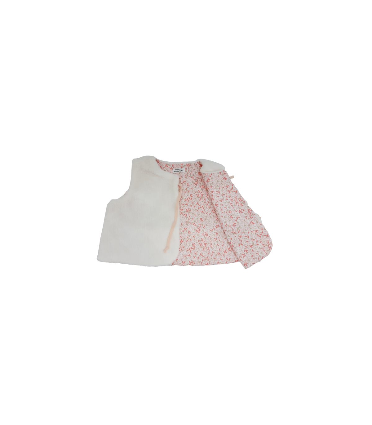 Gilet de berger beige à l'extérieur et fleuri à l'intérieur - gilet doux