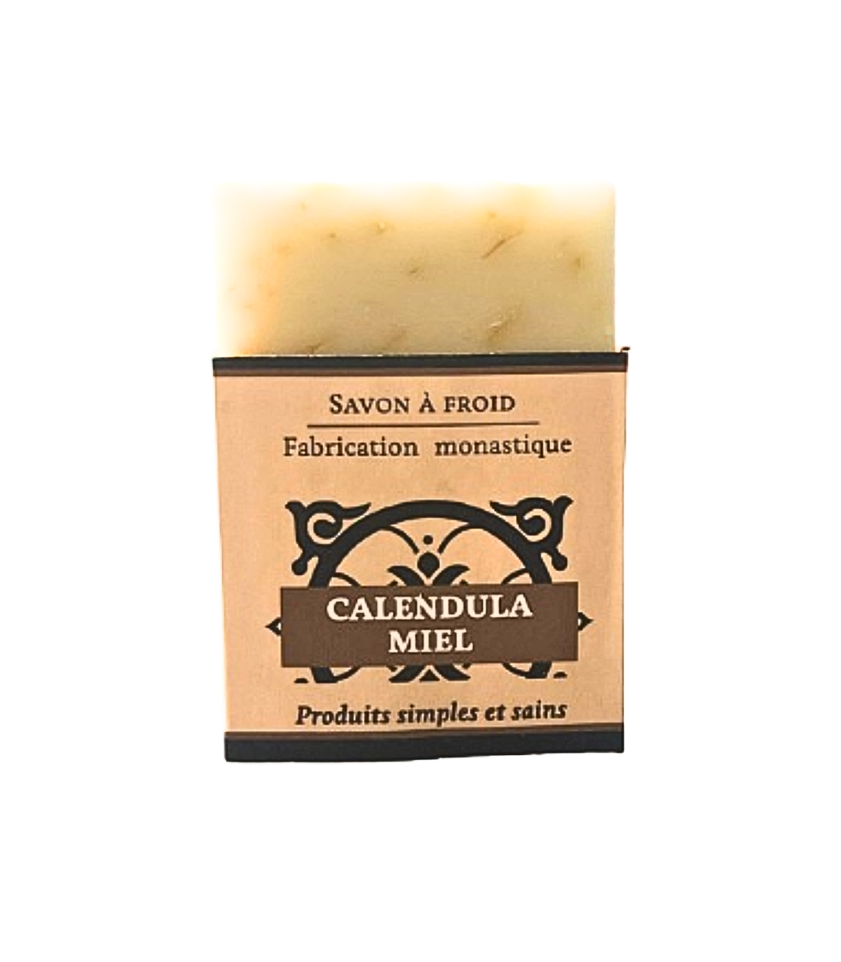 Composition : Huiles saponifiées( olive,cocco,palme,tournesol)Eau,pétales de Calendula.