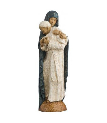 Statue de Saint Jean Paul II dans les bras de la Vierge en dolomie.