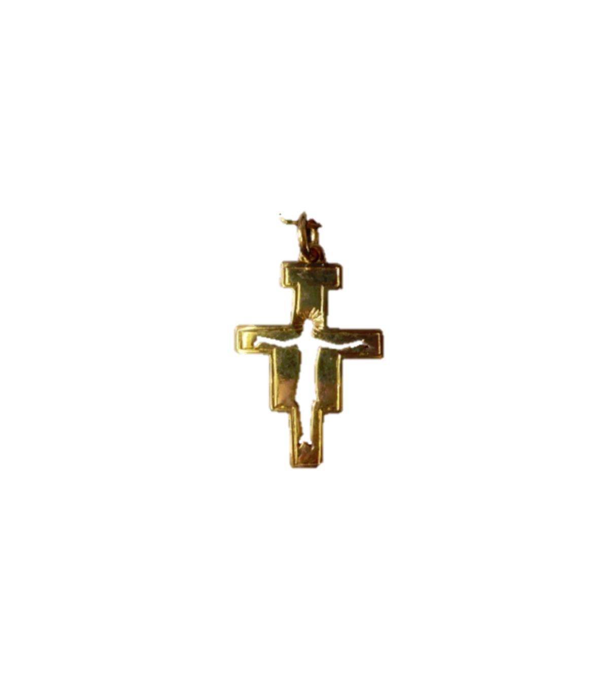 Médaille Croix St Damien plaqué or Le crucifix Saint Damien représente le crucifix de la Chapelle Saint-Damien d'Assise. C'est devant cette croix que Saint François d'Assise eut une appartition du Christ, qui lui dit ""Va, et répare ma maison, qui, tu le vois, tombe en ruine"". Taille : 2,2 cm / 1,5cm Existe en argent Idéal pour vos cadeaux de communion, profession de foi et confirmation. Ce pendentif argent a été confectionné avec soin par les Clarisses de Millau, des Soeurs qui vivent de leur travail, et qui sont baignées dans un climat qui favorise la vie spirituelle.