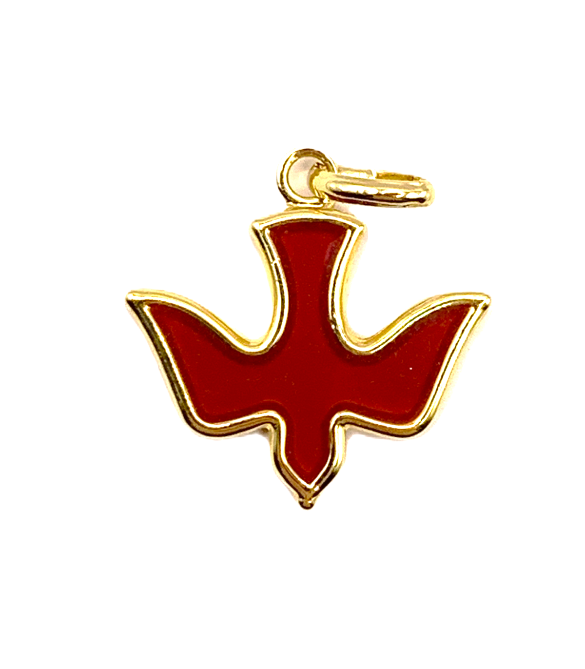 Colombe émail rubis en laiton Un ravissant pendentif en émail rubis, représentant une colombe, messagère de Dieu et symbole de la Paix. Taille : 14 mm Egalement disponible en émail bleu ciel, bleu azur ou émail blanc. Ce pendentif sera idéal pour vos cadeaux de communion, de profession de foi ou de confirmation. Produit fabriqué avec soin par le Monastère de Bethléem à Saint Pé de Bigorre (65).