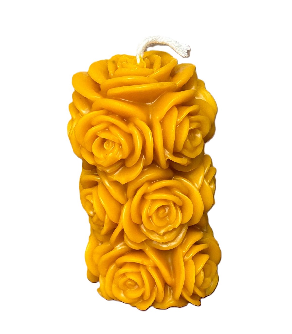 Bougie en cire d'abeille naturelle, réalisée artisanalement.