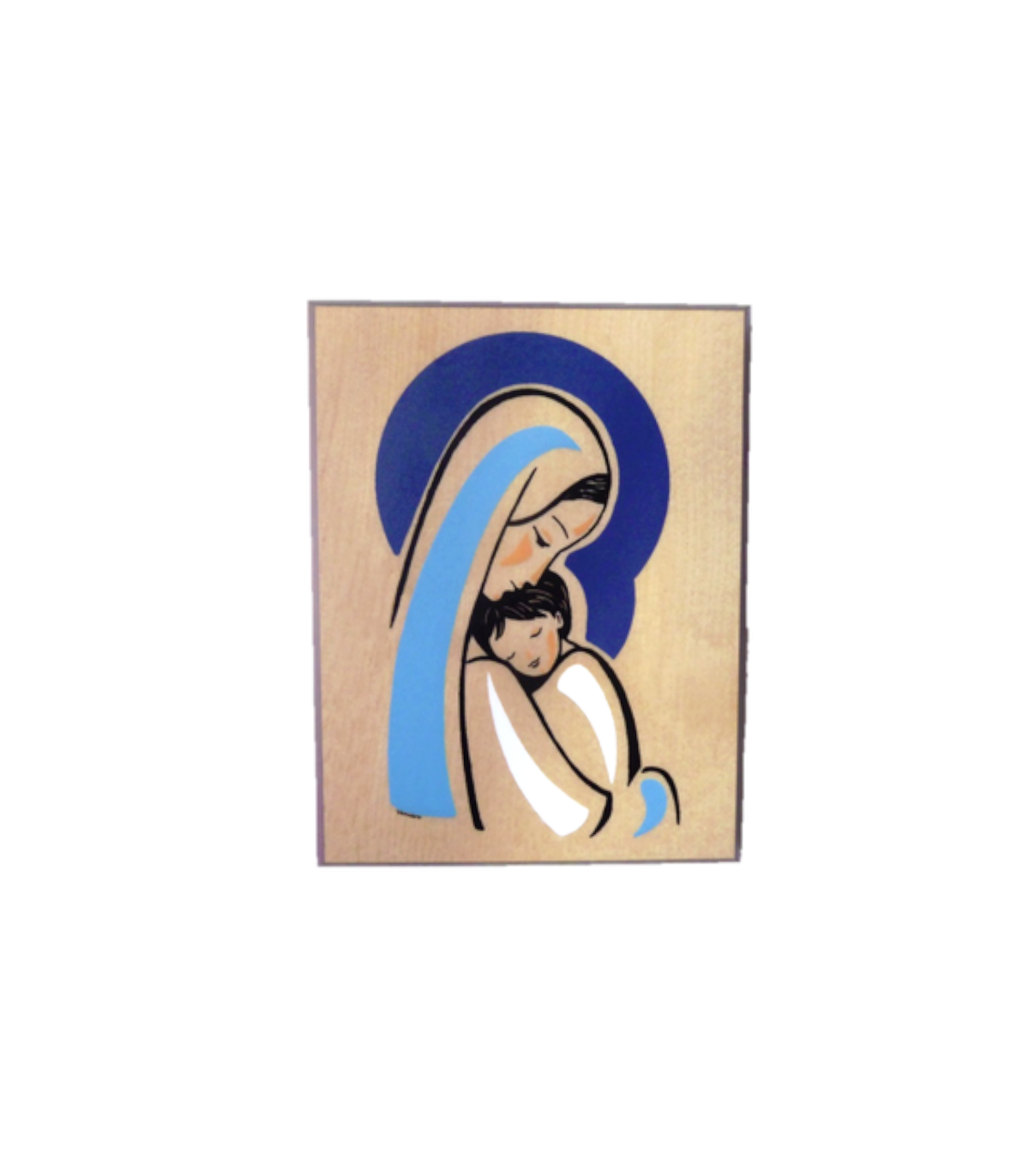 Les Sœurs de Venière vous propose une très belle peinture sur bois laminé, représentant la Vierge Mère. Au verso se trouve une courte prière, et une attache murale.