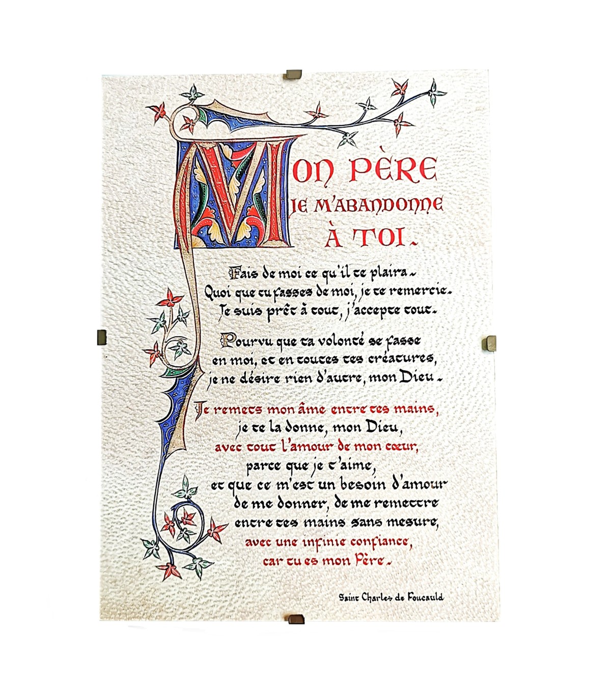 Les Sœurs de Jouques vous proposent une reproduction d'enluminure pour illustrer cette magnifique prière de Charles de Foucauld