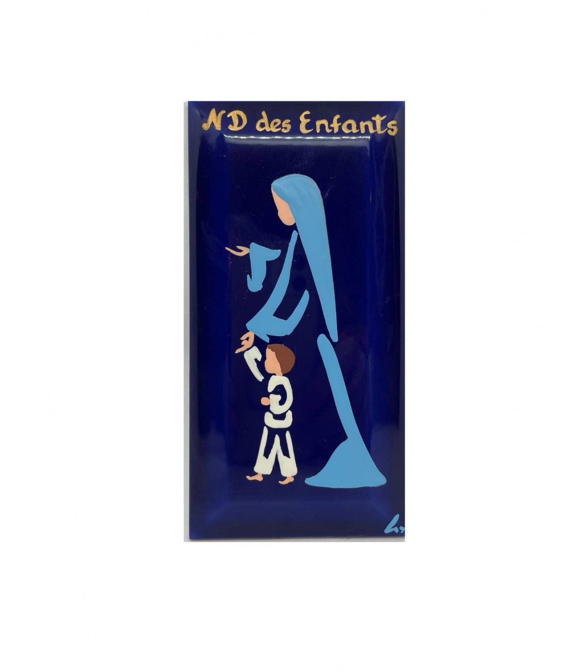 Plaque murale ND des Enfants (15*7.5 cm), en céramique peinte à la main à partir de modèles créés par l’Atelier Marie-Dominique. Depuis 1960.