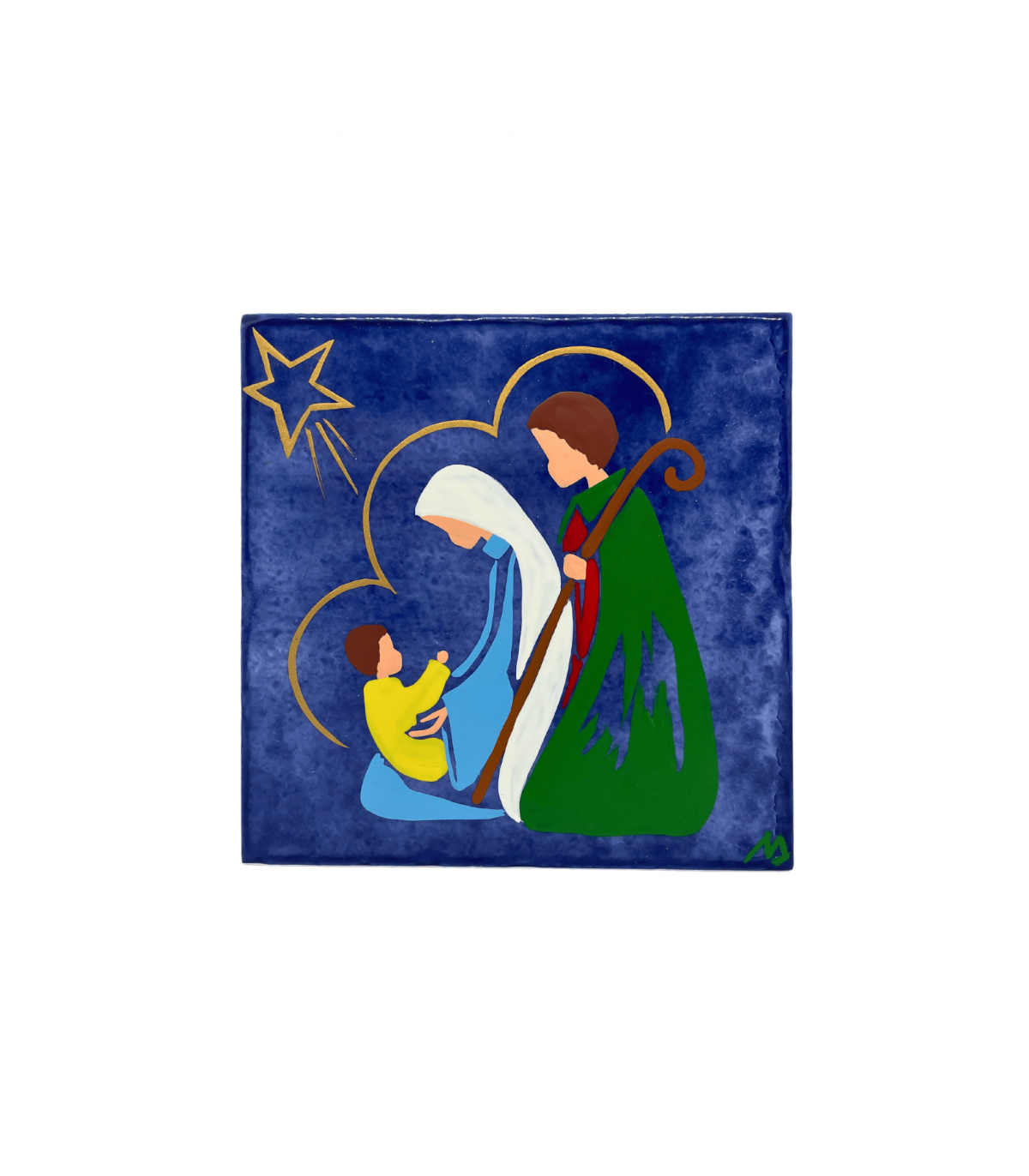 Plaque murale ND Voile blanc (15*15 cm), en céramique peinte à la main à partir de modèles créés par l’Atelier Marie-Dominique. Depuis 1960.