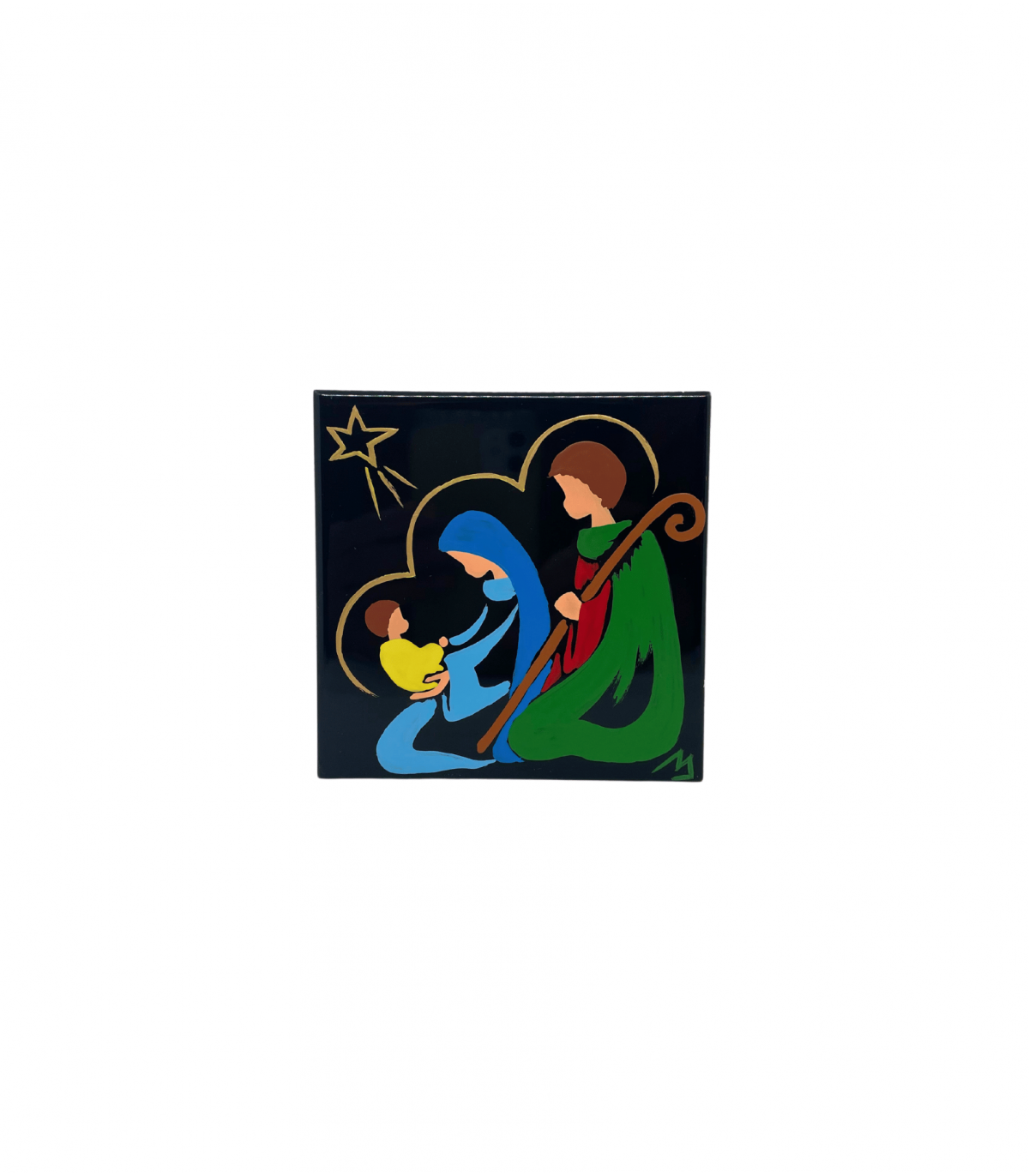 Plaque murale ND voile bleu (11*11 cm), en céramique peinte à la main à partir de modèles créés par l’Atelier Marie-Dominique. Depuis 1960.