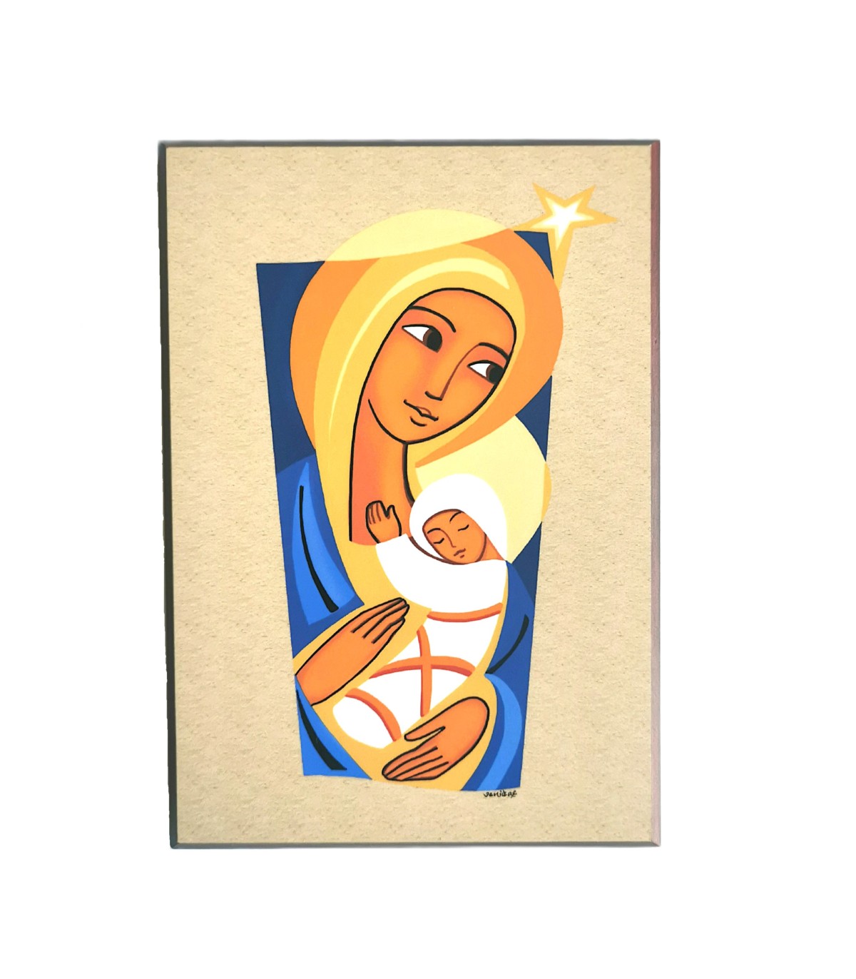 Dans la tendresse de ses bras, Marie nous accueille et nous réconforte — une présence paisible à offrir ou à garder près de soi.