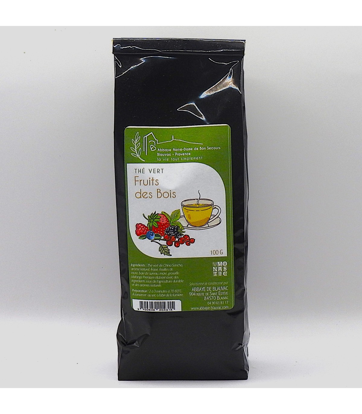 Description: Ce thé vert aux fruits des bois bio est un thé de très bonne qualité, avec un arôme bien prononcé. Il vous réchauffera en ces soirées un peu fraiches.