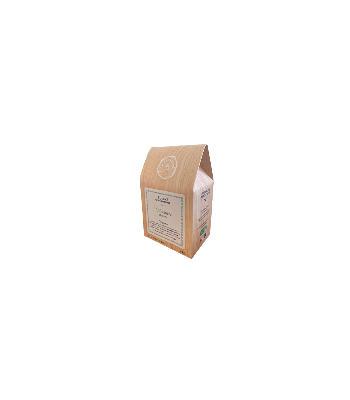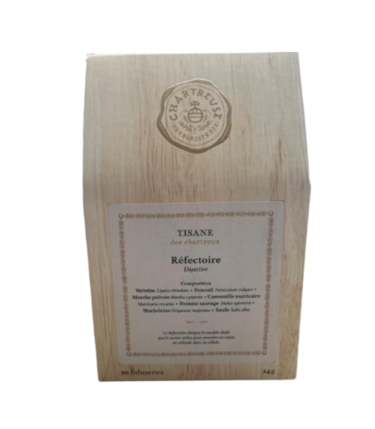 Cette tisane élaborée avec un savoir-faire historique par les Chartreux aide à la bonne digestion. Héritiers de la tradition apothicaire des monastères chartreux, les moines élaborent avec soin des produits authentiques. Cette préparation doit être bue avec modération et ne se substitue pas au conseil d'un professionnel de santé.