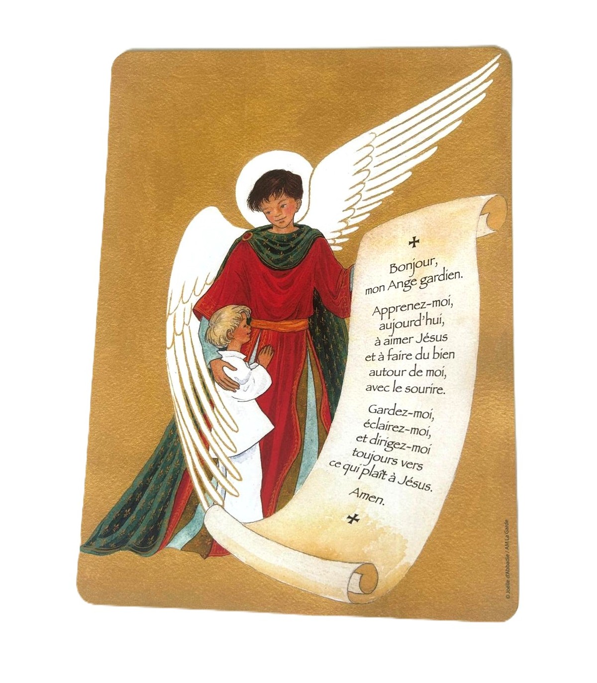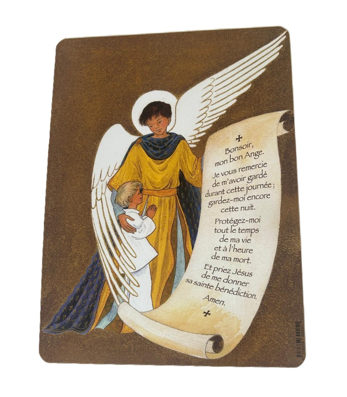 Pratique (format A5, recto-verso, plastifié), cette carte peut être gardée dans un coin prière ou glissée près du lit.