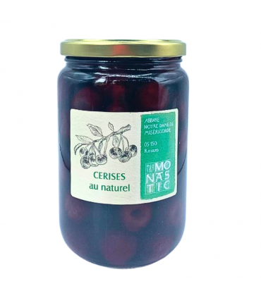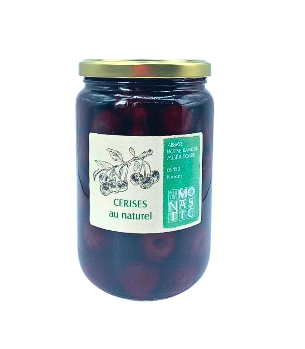 Ces cerises au naturel sont épluchées, préparées et pasteurisées par les moniales bénédictines de l’Abbaye Notre-Dame de Rosans (Hautes-Alpes). Les cerises utilisés proviennent de vergers d’altitude perchés entre Hautes Alpes et Drôme, dans le Parc des Baronnies. Ces fruits sont un héritage naturel gardé avec passion par les producteurs, que les sœurs préparent dans un sirop de sucre qu’elles pasteurisent à 85°C, pour une conservation simple qui préserve leurs qualités.