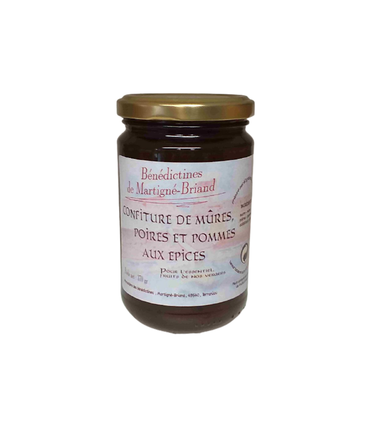 Ingrédients : sucre, mûres, poires, pommes, acidifiant: citron. Peut contenir des traces de fruits à coque.