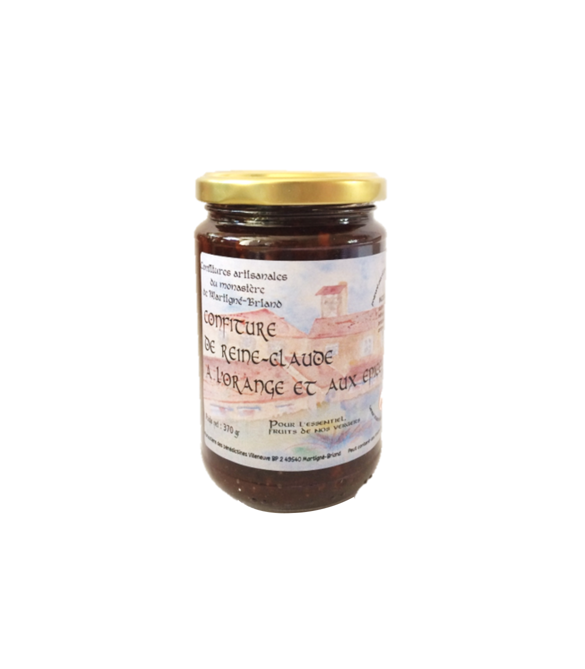 Ingrédients : sucre, reine-claude, oranges (hachées), arôme: épices. Préparé avec 60gr de fruits pour 100 gr. Teneur totale en sucre :  60gr pour 100gr