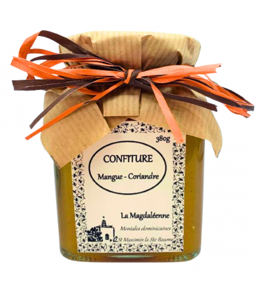 Cette confiture combine la douceur exotique de la mangue à la fraîcheur épicée de la coriandre, pour une expérience gustative originale et raffinée.