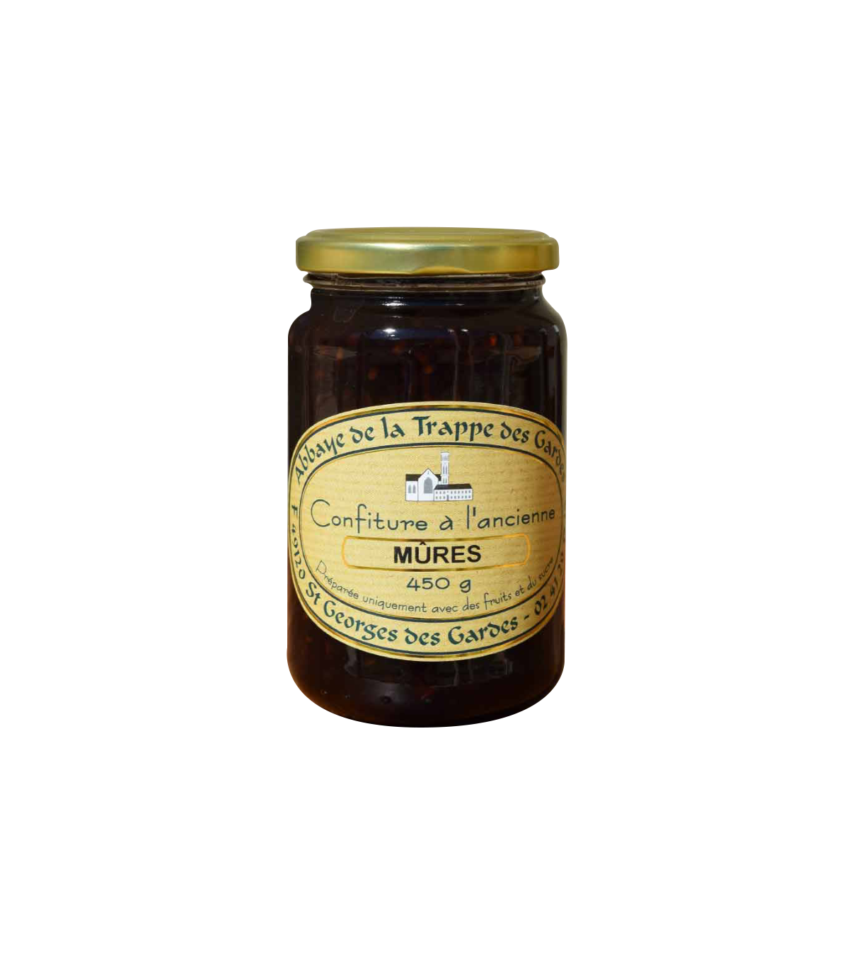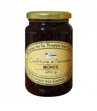 La confiture de mûres de l’Abbaye Notre-Dame des Gardes mêle la douceur des fruits sauvages à la texture soyeuse d’une préparation artisanale, pour un goût authentique et généreux.