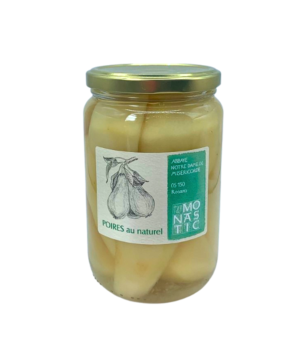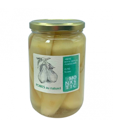 Ces poires au vin sont épluchées, préparées et pasteurisées par les moniales de l’Abbaye Notre-Dame de Rosans (Hautes-Alpes). Les poires utilisées proviennent de vergers d’altitude perchés entre Hautes Alpes et Drôme, dans le Parc des Baronnies, elles sont de variétés Conférences ou Williams. Ces fruits sont un héritage naturel gardé avec passion par les producteurs, que les sœurs cuisent en bocal dans du vin des Baronnies, avec un léger sirop de sucre, qu’elles pasteurisent à 90°C, pour une conservation simple qui préserve leurs qualités.