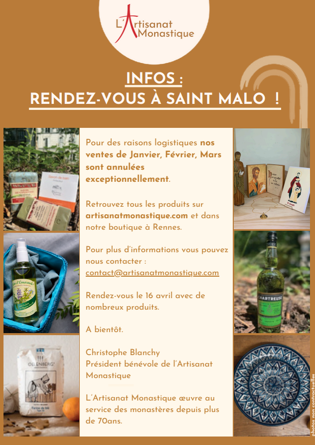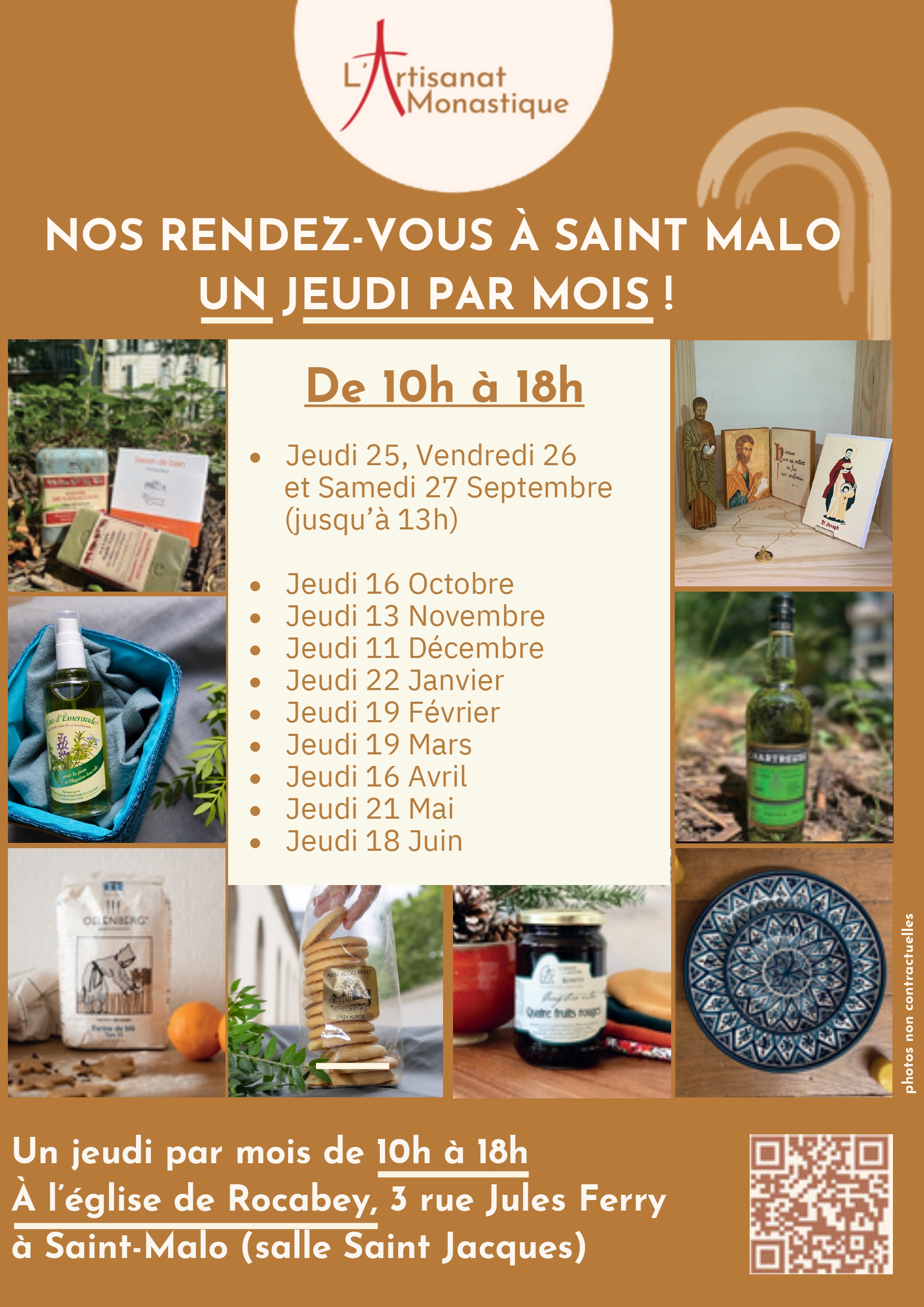 Vente un jeudi par mois à Saint Malo (Eglise de Rocabey) de 10h à 18h.