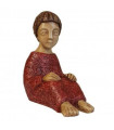Vierge Marie assise. Marie, personnage de la Sainte Famille, représente à la fois la pureté et l'amour qu'une mère peut porter à son enfant. La crèche est une tradition de Noël, représentant la naissance du Christ. Cette tradition a été instaurée au XIIIème siècle, par Saint François d'Assise, lorsque celui-ci mit en place une crèche vivante dans une grotte de Greccio.
