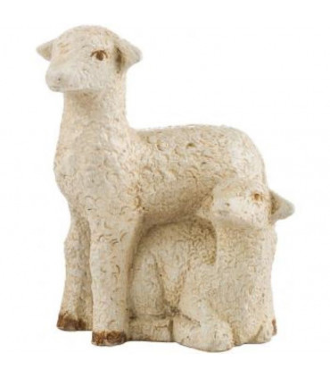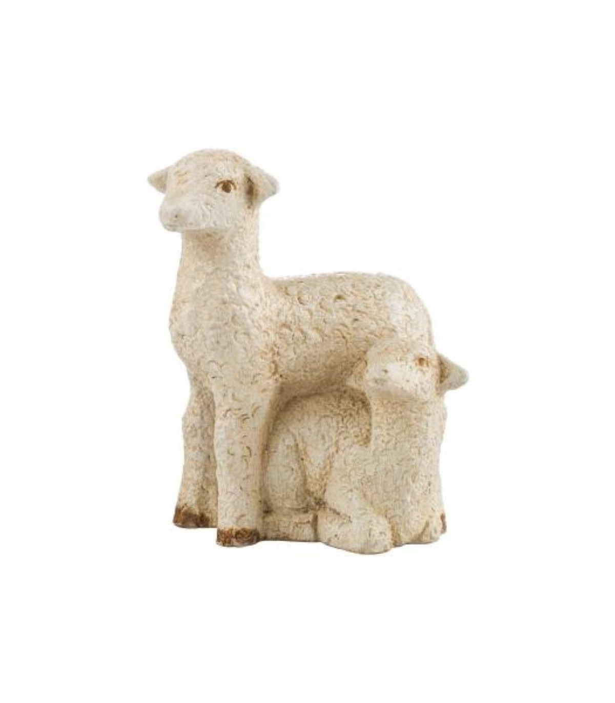Brebis et agneau Le mouton vient de la scène des bergers, dans l'Evangile selon St Luc. ils symbolisent la douceur et l'innocence. La crèche est une tradition de Noël, représentant la naissance du Christ. Cette tradition a été instaurée au XIIIème siècle, par Saint François d'Assise, lorsque celui-ci mit en place une crèche vivante dans une grotte de Greccio.