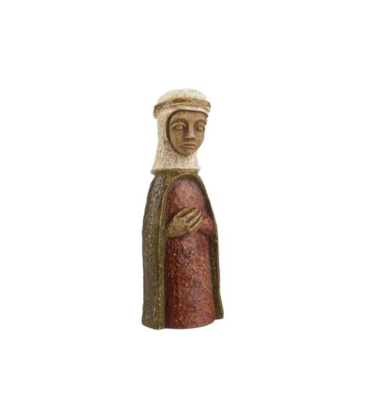 Mage arabe - Balthazar le roi mage arabe, en dolomie. C'est dans l'Evangile de Matthieu que l'on trouve le récit de l'Epiphanie. Les mages ont été guidés par une étoile jusque vers l'Enfant Jésus Sauveur du Monde. On y lit qu'ils offrirent de l'or, de l'encens et de la myrrhe et la tradition populaire en a déduit qu'ils étaient trois. Cette même tradition nous dit que les mages représentent tous les peuples de la terre pour qui Jésus est né ainsi que les trois âges de la vie (la jeunesse, l'âge mûr et la vieillesse). Le premier, Melchior, mage africain, représente la vieillesse, et offrit de l'or, signe le la royauté du Christ. Le second, Gaspard, en provenance de l'Asie, représente la jeunesse, et offrit de l'encens, signe de la divinité du Christ Le troisième, Balthazar, viendrait d'Occident, représente l'âge mûr, offre de la myrrhe, rappelant ainsi que le Fils de Dieu devait mourir.