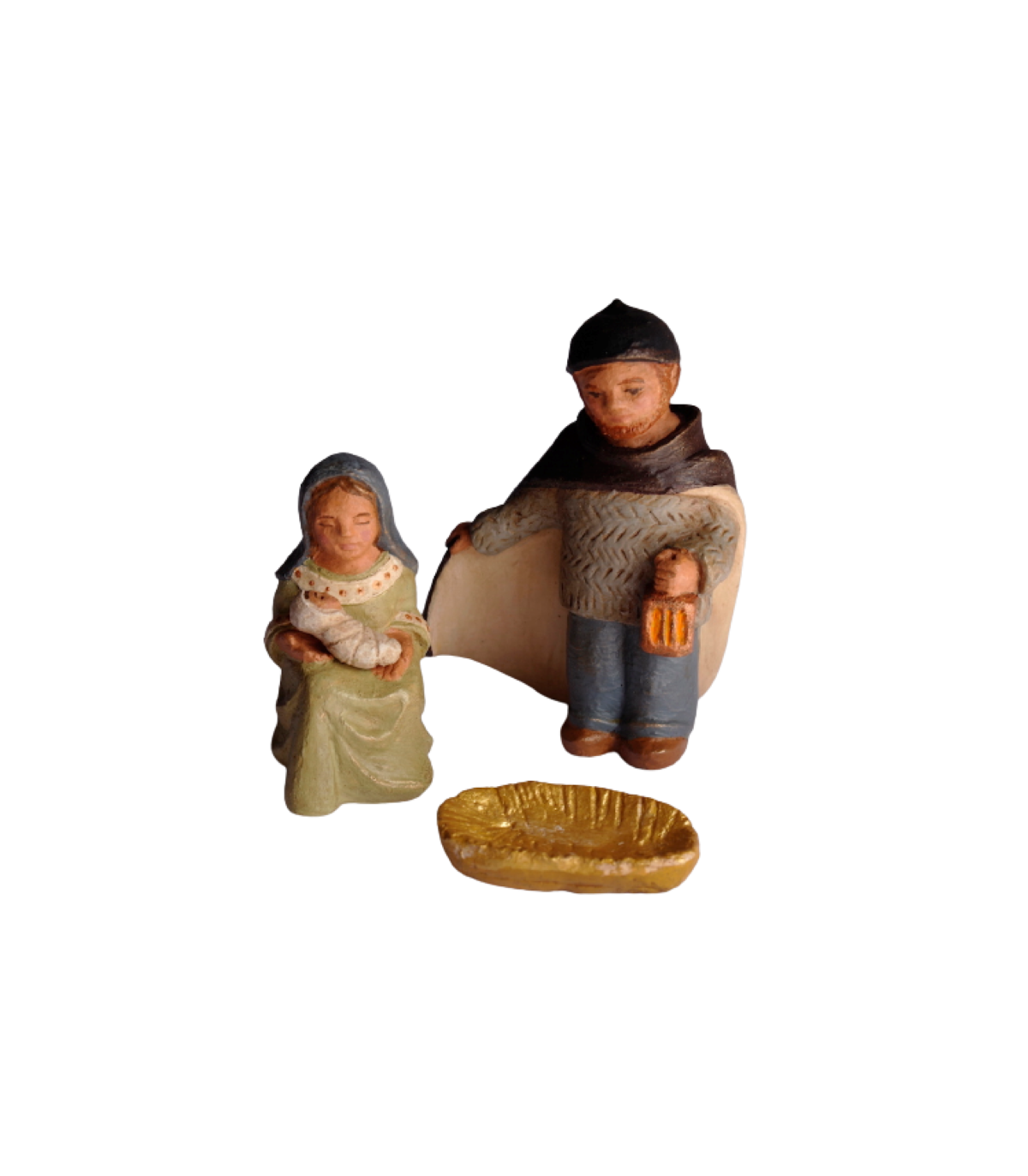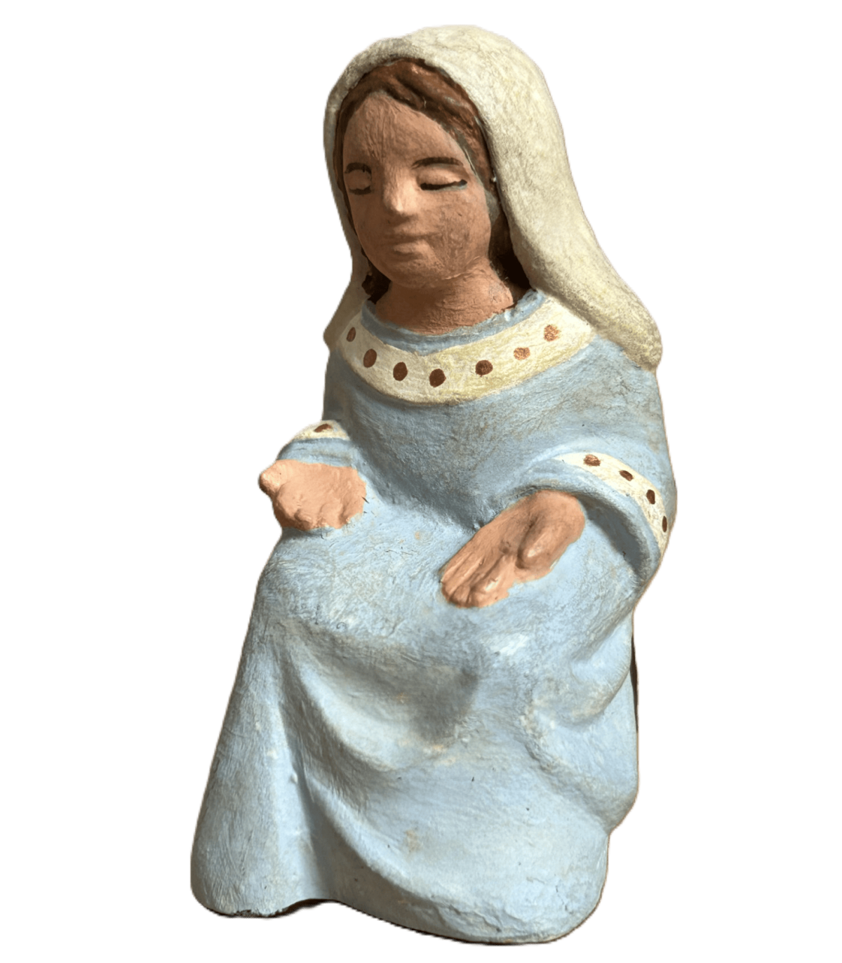 Petite crèche en plâtre moulée et peinte à la main par les sœurs de l'abbaye Saint Scholastique de Dourgne.