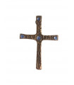 Croix latine murale en bronze avec des incrustations en émail.