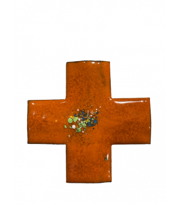 Croix grecque "Vive flamme d'amour" émaillée orange