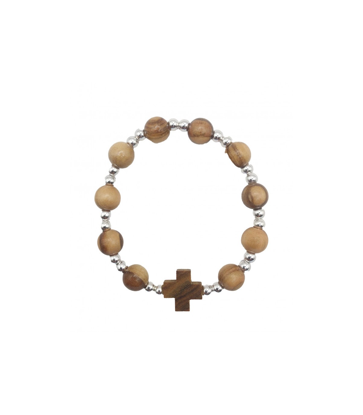 Dizainier bracelet en bois d'olivier et perles d'argent pour adulte