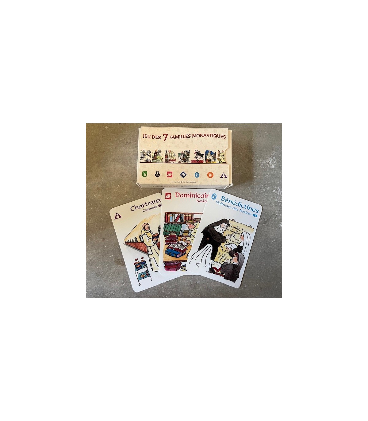 Jeu de cartes des 7 familles monastiques : Chartreux, Dominicains, Bénédictines, Franciscains, Bénédictins, Pères du désert, Trappistes, Franciscains