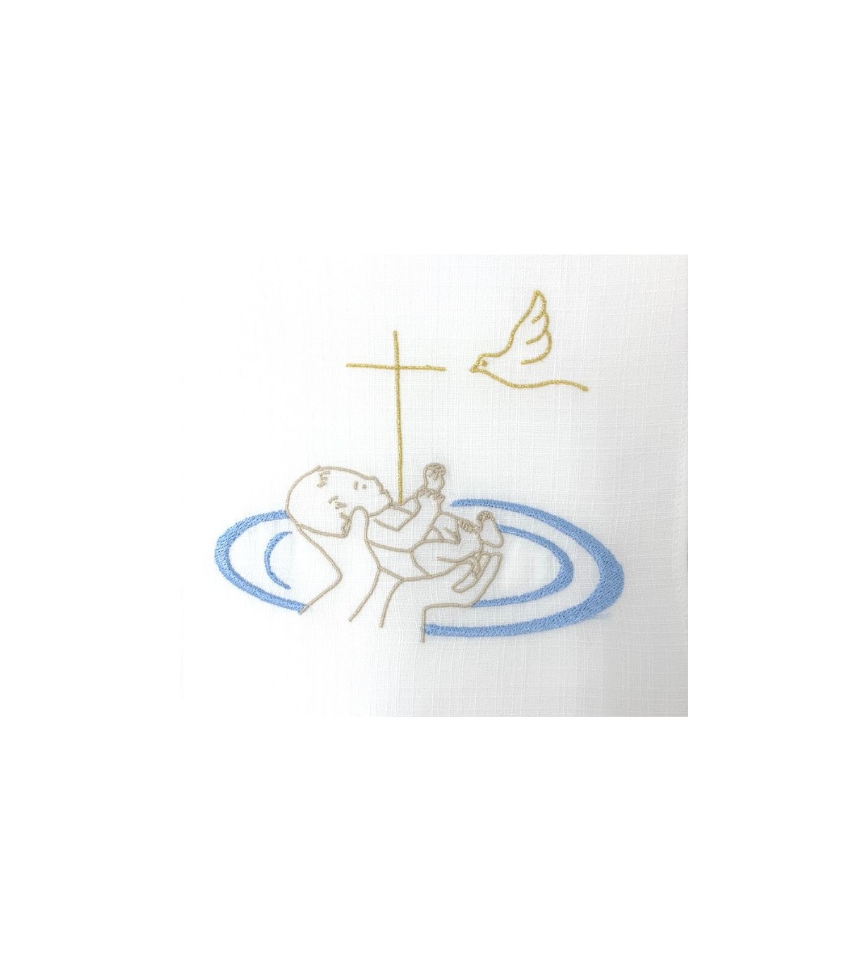 Cette écharpe de baptême est confectionnée et brodée par les moniales du monastère de la Roche sur Yon.