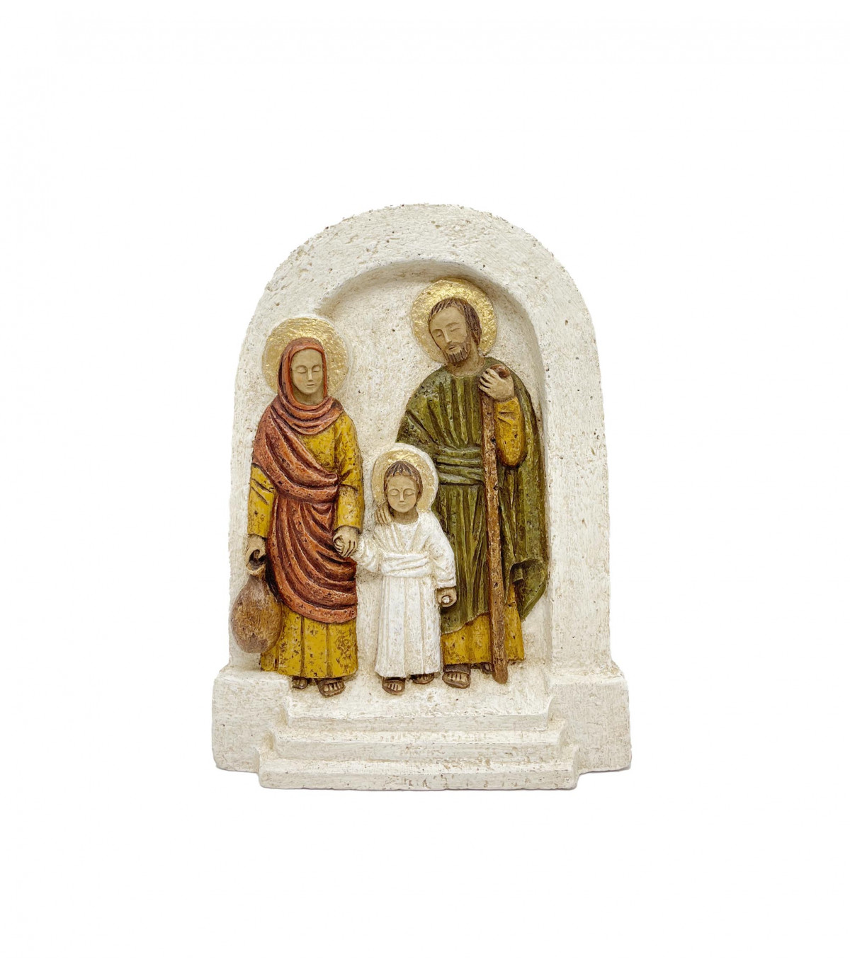 Bas-relief Sainte Famille en dolomie - blanc rouge vert - 18.5cm