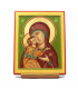 Cette icône est inspirée d'un modèle datant du XII-XIVème siècle, très probablement de l'école de Novgorod. La tradition orthodoxe attribue les premières icônes de la Vierge à l'évangéliste Saint Luc qui en aurait peint trois après la Pentecôte. Les visages de la mère et de l'enfant sont appuyés l'un contre l'autre dans une douce intimité. L'icône est une image liturgique dont l'écriture est basée sur un technique établie alliée à une prière contemplative. Elle nait de la Tradition et de la Parole de Dieu.