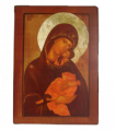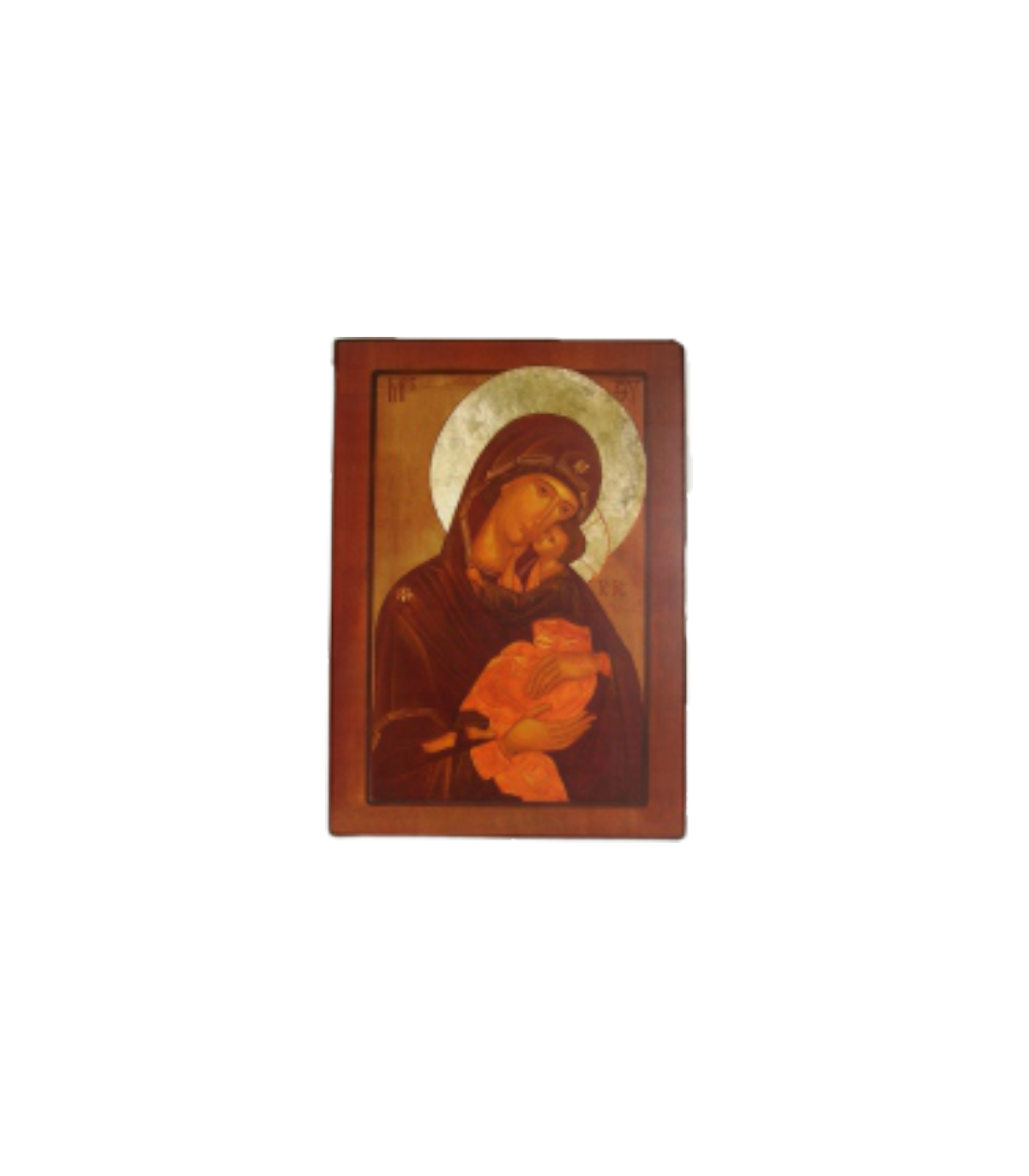 La Mère de Dieu porte trois étoiles sur son vêtement, signe de sa virginité, comme le chante la liturgie byzantine : "Vierge avant l'enfantement, Vierge tu as enfanté, et Vierge tu demeures"