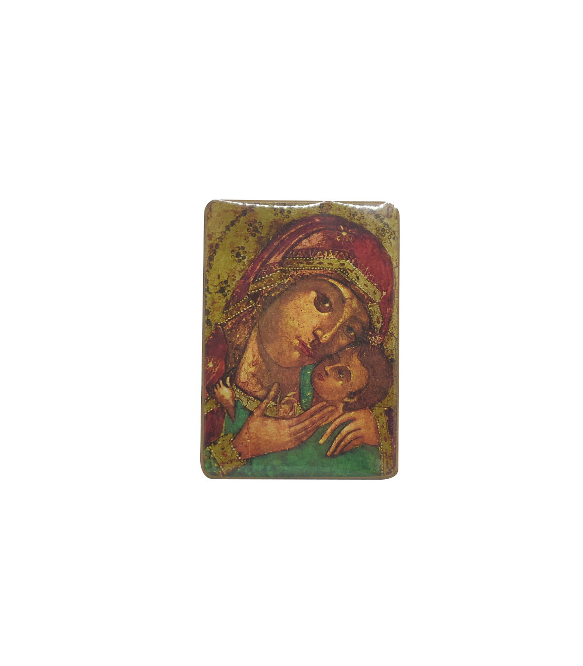 Dimension : 10x14 cm Dans ce type de Vierge les visages de la Mère et du Fils se rejoignent avec une douce expression d'intimité.