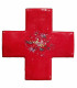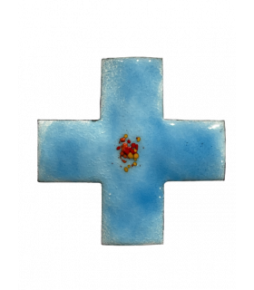 Croix grecque "Sang de la Passion" émaillée rouge 7,5*7,5cm, munie d'une attache au dos pour l'accrocher.