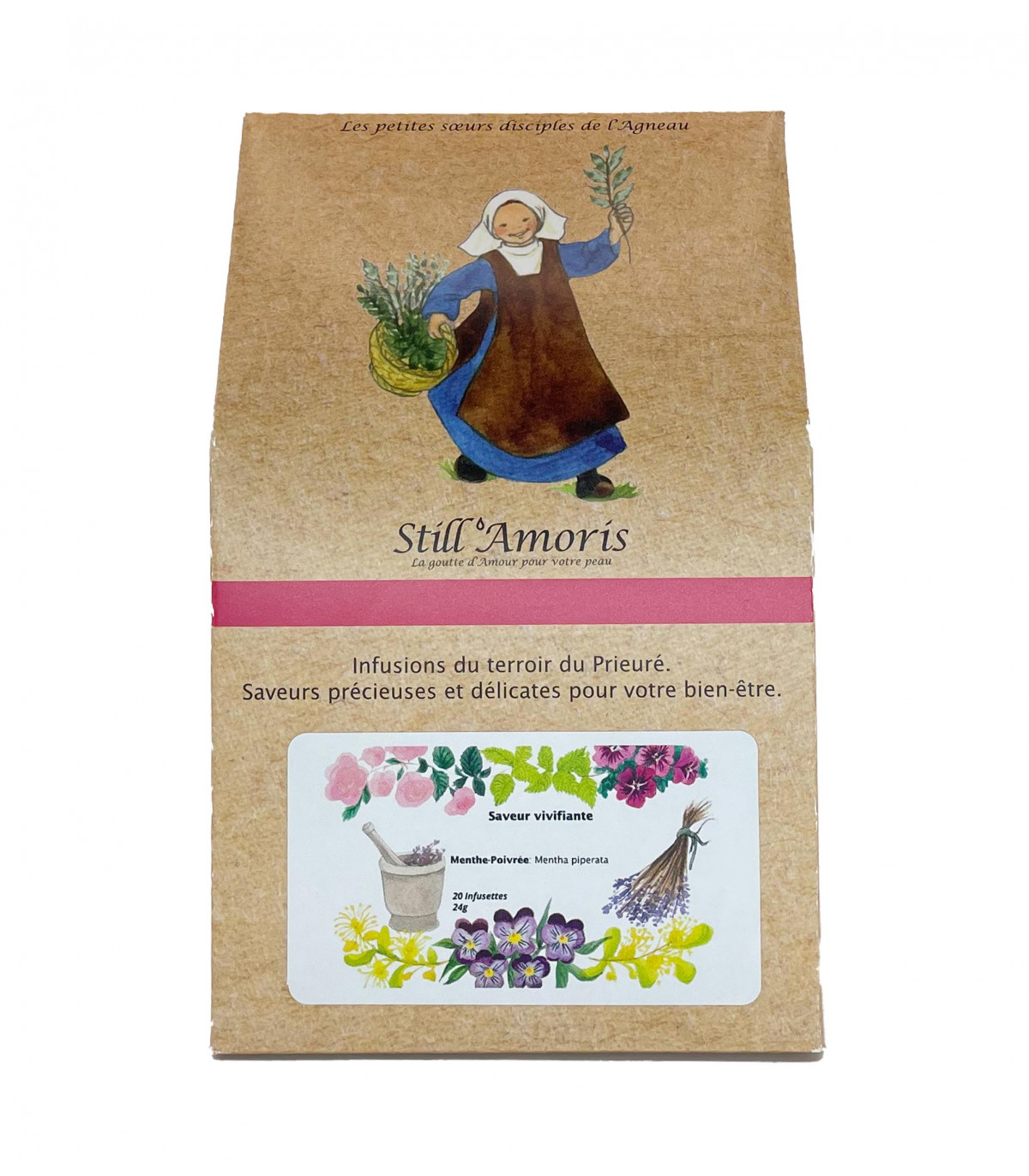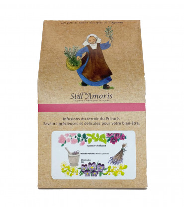Toutes nos plantes proviennent de notre prieuré. Nos plantes sont cueillies et séchées à la main au prieuré par les petites sœurs. Pour conserver toute la saveur et les principes actifs de la plante, nos plantes ne sont pas broyées. Elles sont mises en infusettes.