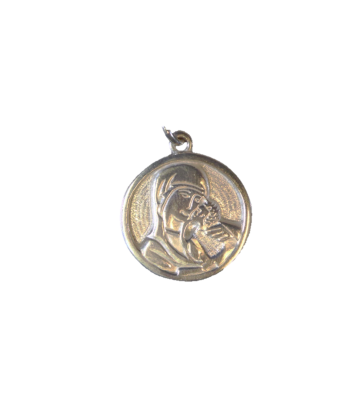 Médaille de la Vierge de Korsun argent La Vierge de Korsun est connue pour son regard attendri, son jeu de main, son visage incliné... Tous ces éléments nous témoignent de son véritable amour pour son fils. Taille : 1,8 cm Existe aussi en plaqué or Idéal pour vos cadeaux de communion, profession de foi et confirmation. Ce produit a été confectionné avec soin par Les Clarisses de Millau, des Soeurs qui vivent de leur travail, et qui sont baignées dans un climat qui favorise la vie spirituelle.