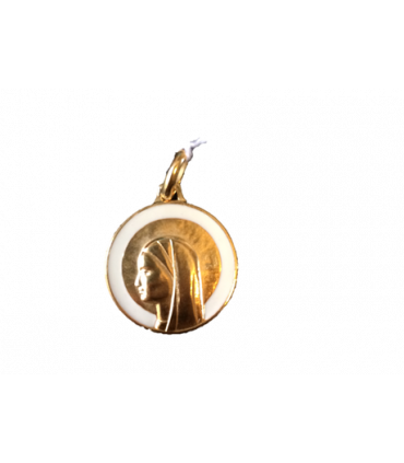 MÉDAILLE DE LA VIERGE BRETONNE EN PLAQUÉ OR ET ÉMAIL BLANC