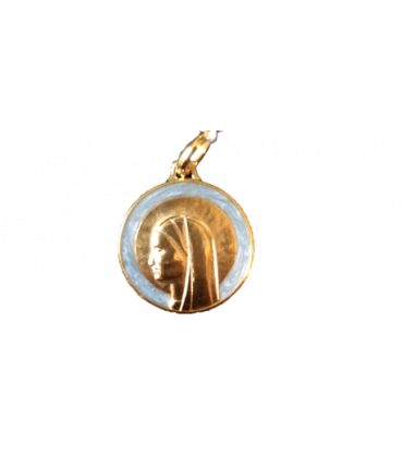 MÉDAILLE DE LA VIERGE BRETONNE EN PLAQUÉ OR ET ÉMAIL BLEU MARINE