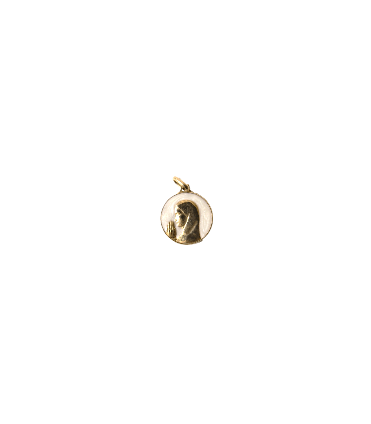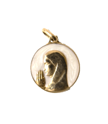 MÉDAILLE DE LA VIERGE ORANTE EN LAITON ET ÉMAIL BLANC Un orant, désigne dans l'art religieux une personne en attitude de prière. Sur cette médaille, la Vierge Marie, les mains jointes, adopte une position de prière et de recueillement. Taille : 1,4 cm CE PENDENTIF SERA UN TRÈS BON CHOIX POUR VOS CADEAUX DE COMMUNION, PROFESSION DE FOI ET CONFIRMATION. PRODUIT FABRIQUÉ À LA MAIN PAR LES PETITES SOEURS DE BETHLÉEM DU MONASTÈRE DE SAINT PÉ DE BIGORRE (65).