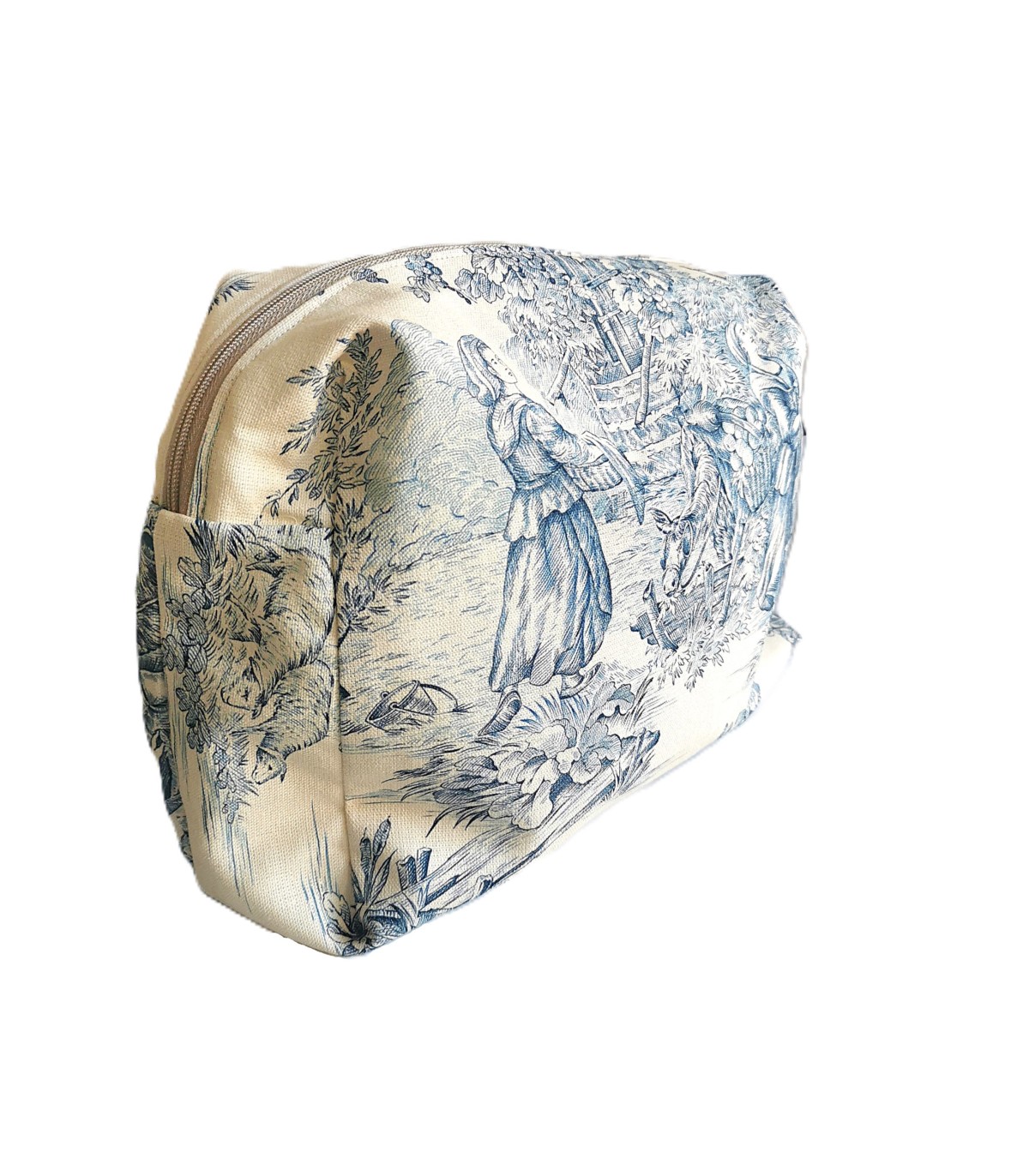 La trousse de toilette en toile de Jouy bleu : pratique et chic