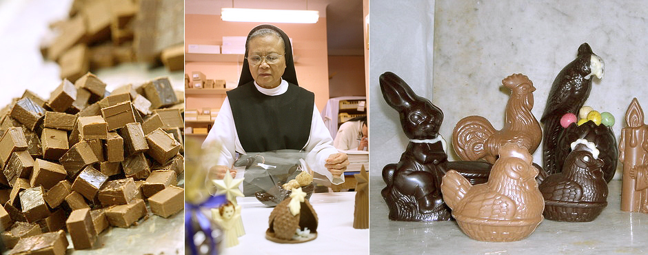 En 1950, pour assurer leur subsistance, les sœurs commencent un artisanat de confiserie-chocolaterie leur permettant de vivre du « travail de leurs mains », tout en maintenant leur vie de prière et de silence comme le demande saint Benoît dans sa règle.