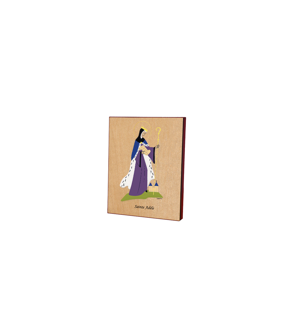 Saint Patron en laminage sur bois avec des encres garanties longue durée, finition acajou, protection anti-uv.