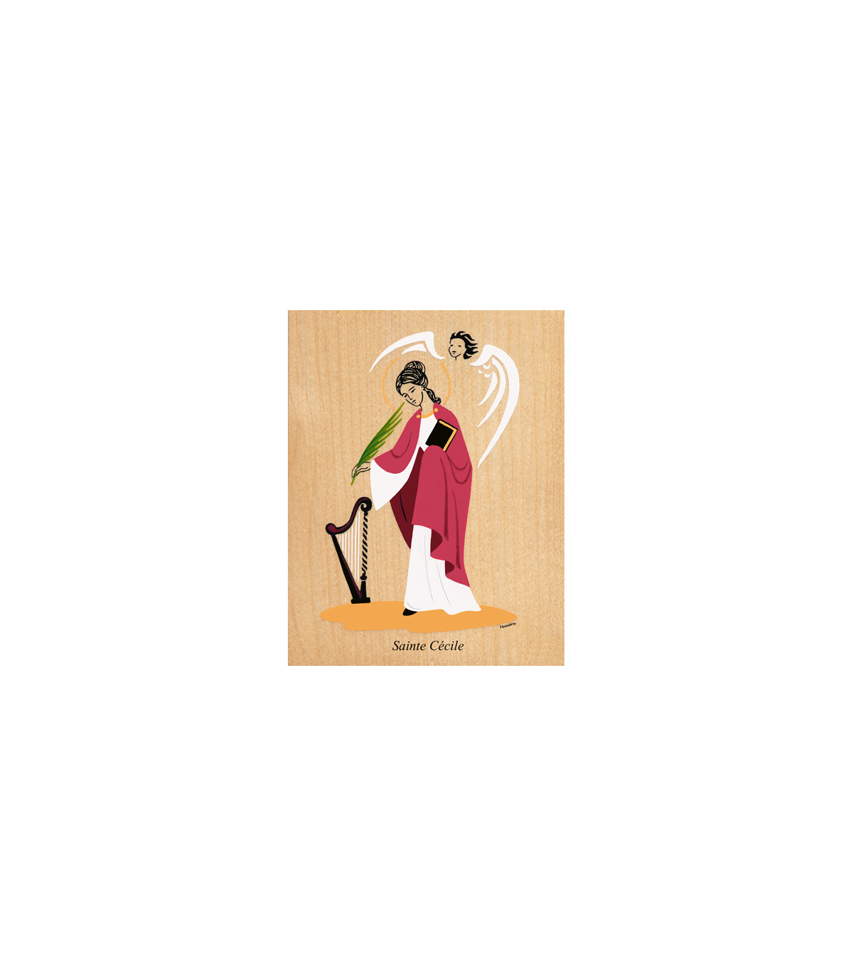 Saint Patron en laminage sur bois avec des encres garanties longue durée, finition acajou, protection anti-uv.
