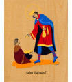 Saint Patron en laminage sur bois avec des encres garanties longue durée, finition acajou, protection anti-uv.